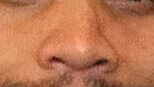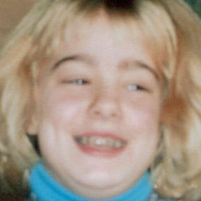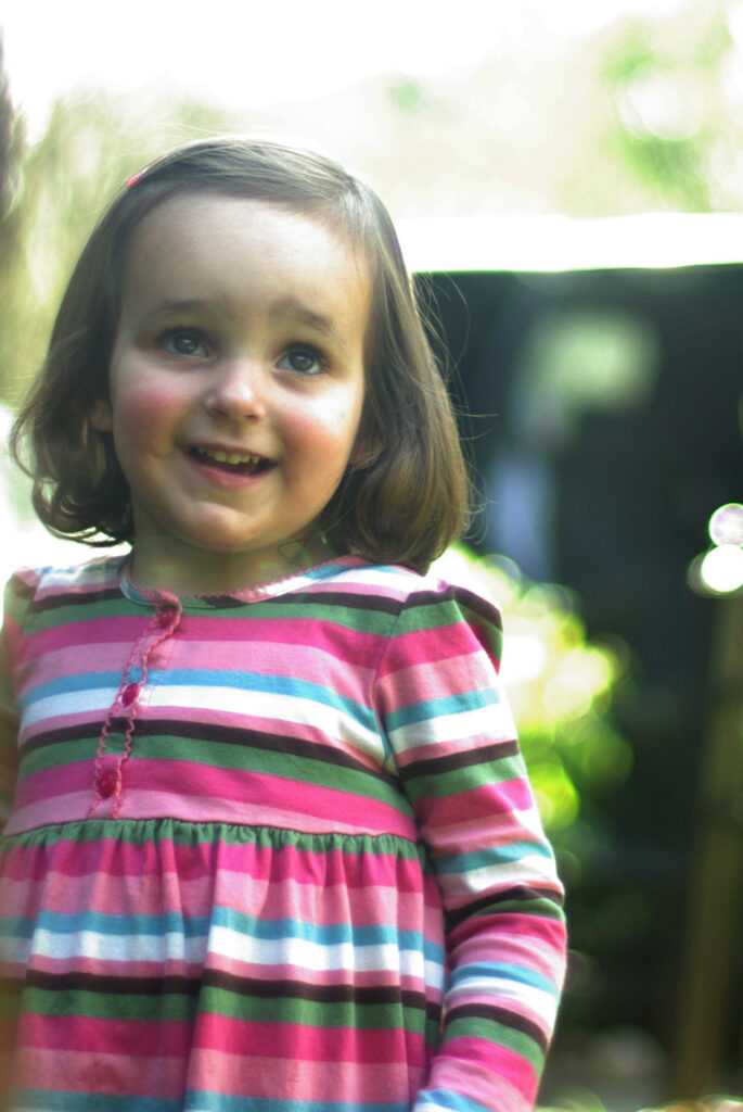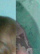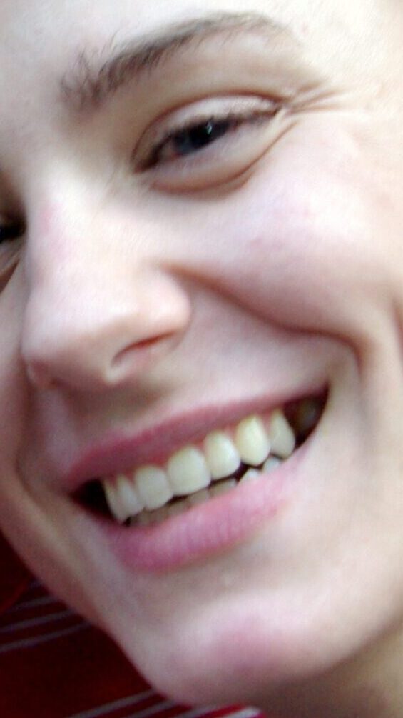 My eyebrows, her eyeballs and hair, our lips and noses combined.