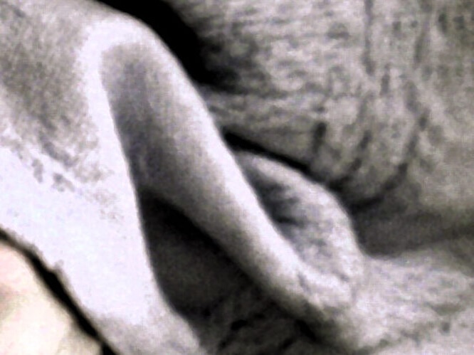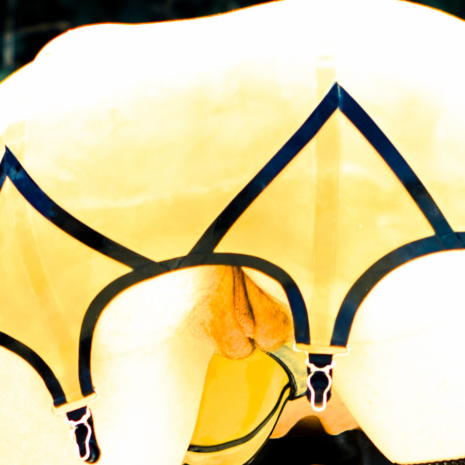 My white sheet is now yellow like her latex outfit, the sheet now positively labial in shape. I am an upside-down vulva.