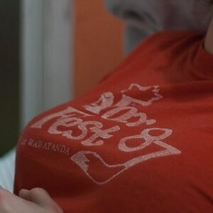 Faces combined, with echos of old Fox Fest shirt designs in his shirt.