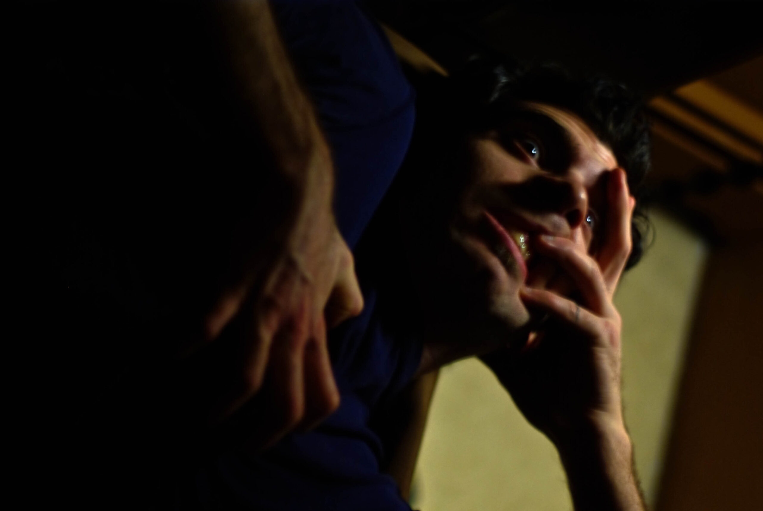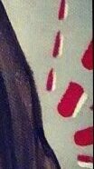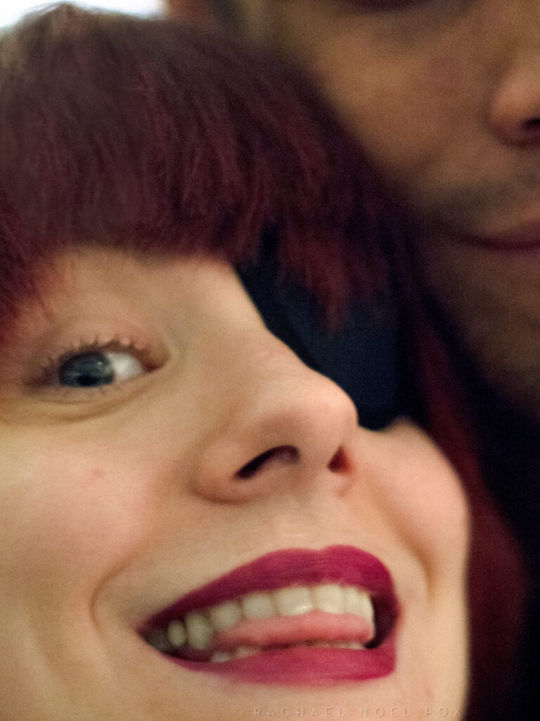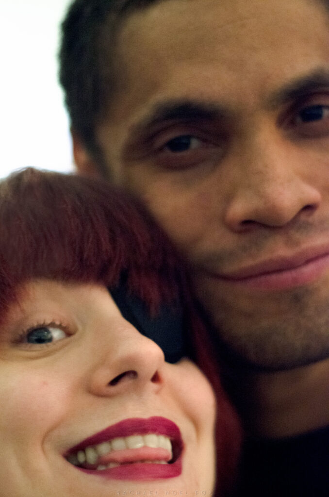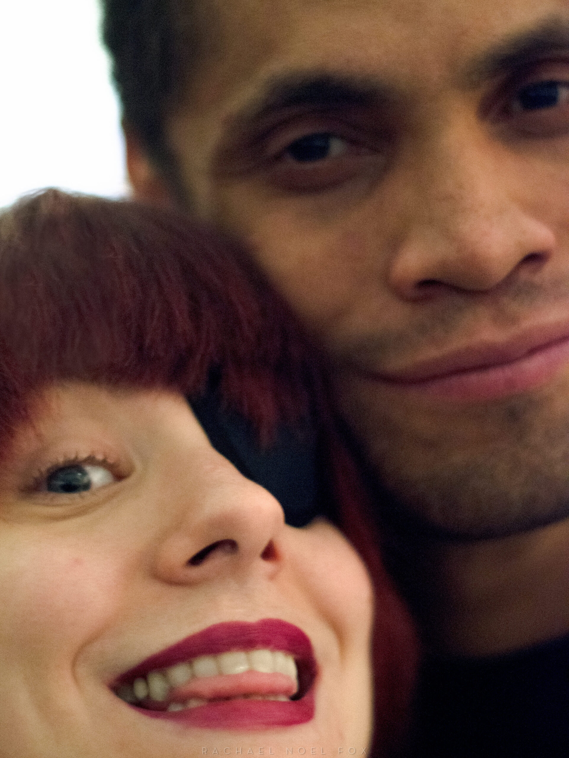 He combines our faces, part boyfriend’s nose part mine. The red graphic element from the backdrop. [IG]