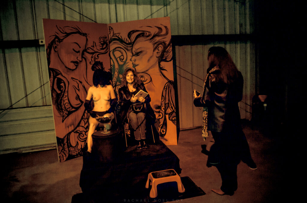 From one month prior, a photo of the performance artist I worked for. [flickr] Her upside-down genitalia brings him to