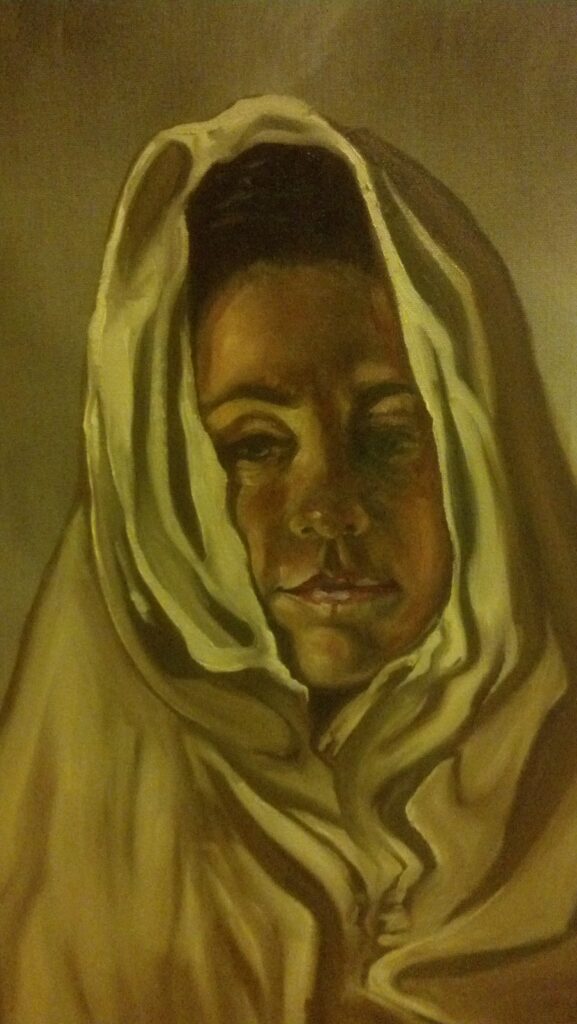 Sorry, my phone can sucks & there’s weird glare from the varnish (can’t get a good angle in here)โฆ.but yeah. You, wrapped in a sheet.