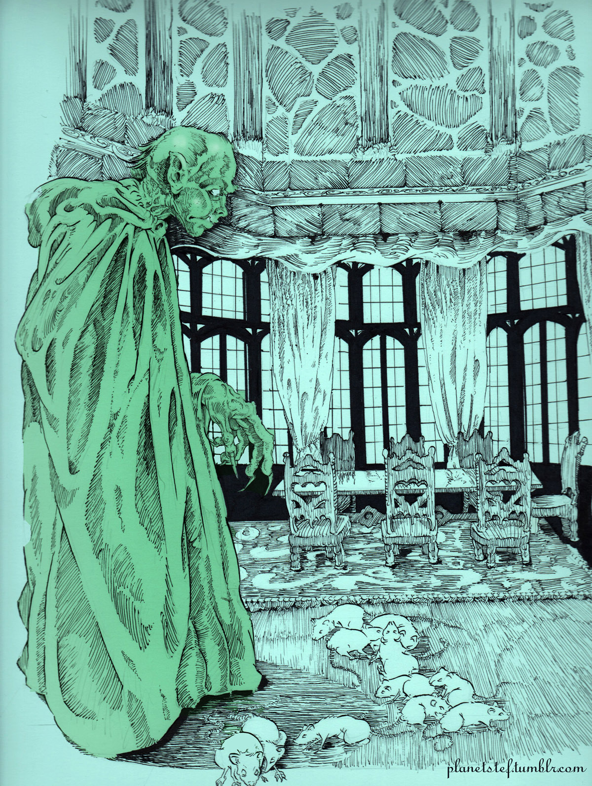Stefan draws a monsterized self portrait. [tumblr]