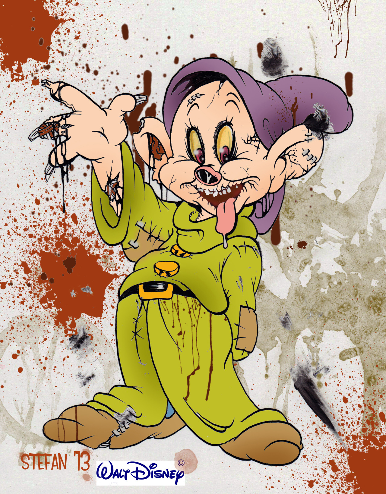 Stefan draws himself as Dopey, who is cannonically draped in the same colors. Clever pun. [tumblr]