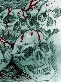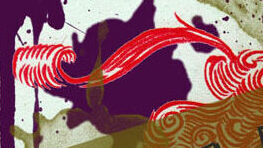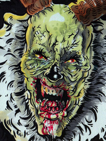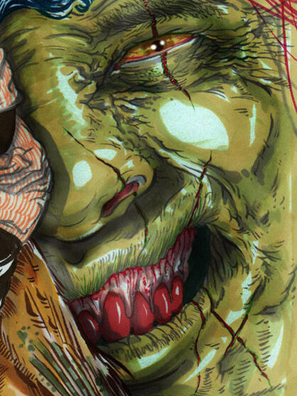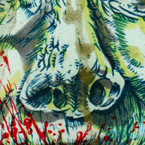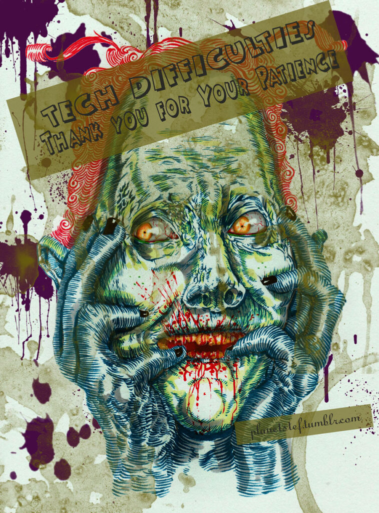 Slimer’s tongue makes the floor pattern, Tony Clifton smoking on stage inspires the fire and smoke. My braces face, my redshirted torso replicated, the zombie dolls make the Stefan cartoon dude, Stefan in my Fox Fest shirt provides the hand, the gas mask tube inspires the pattern of the fingernails. [tumblr]
