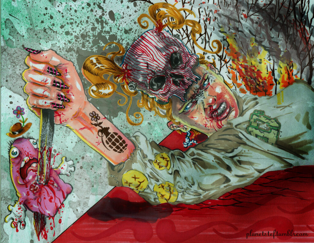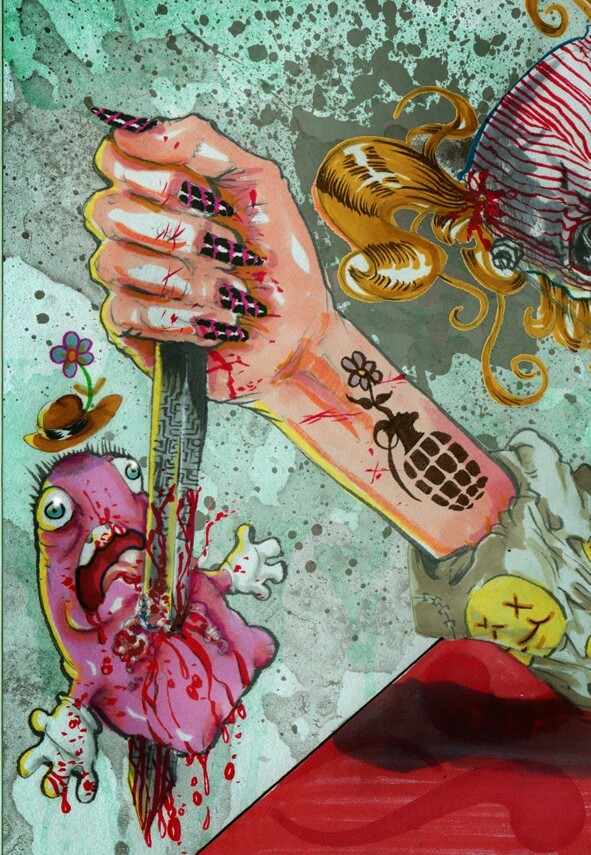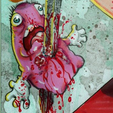 “Detail of previous post….just because it’s all about this little bubblegum monster…and his tragic demise.” [wayback]