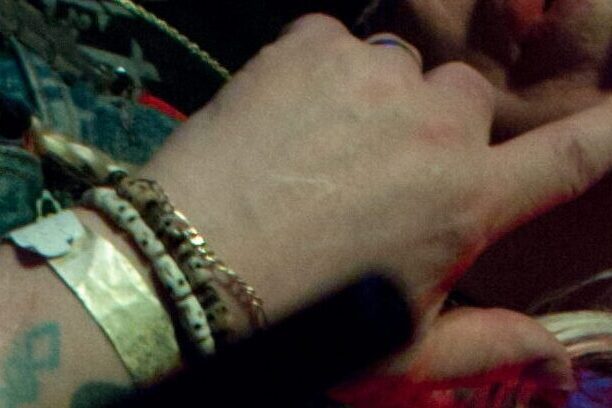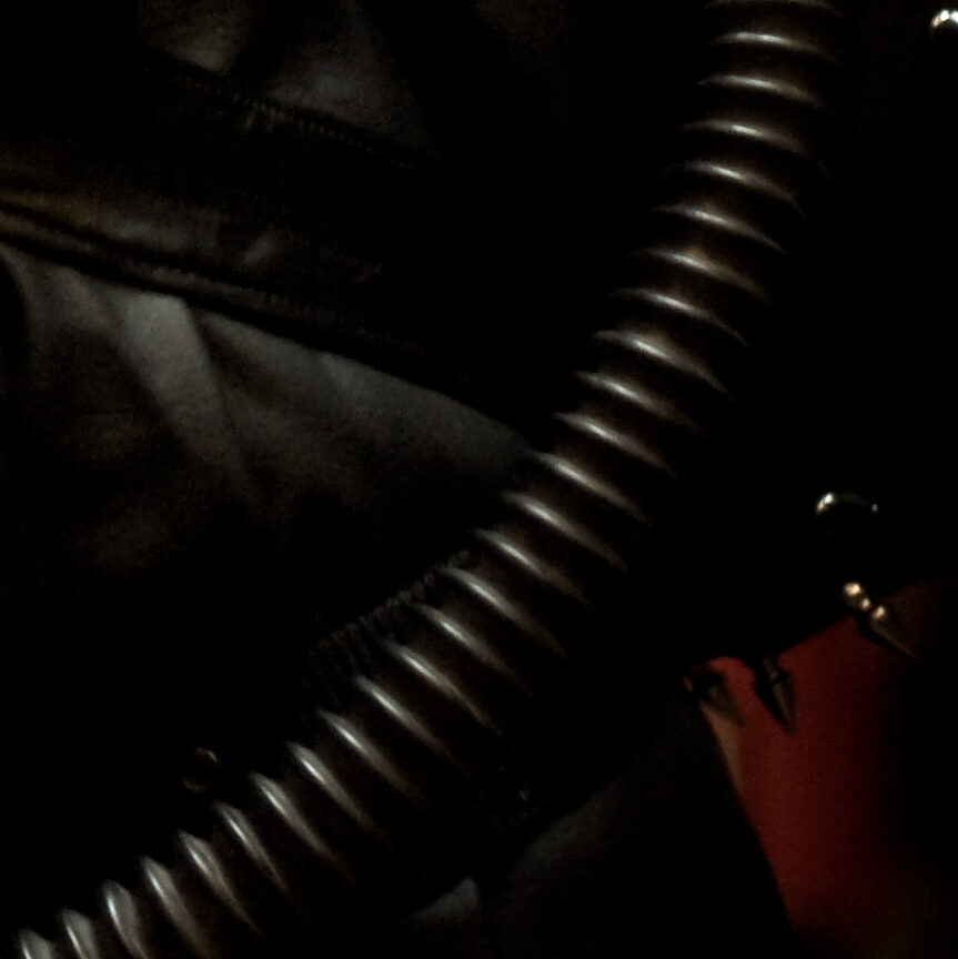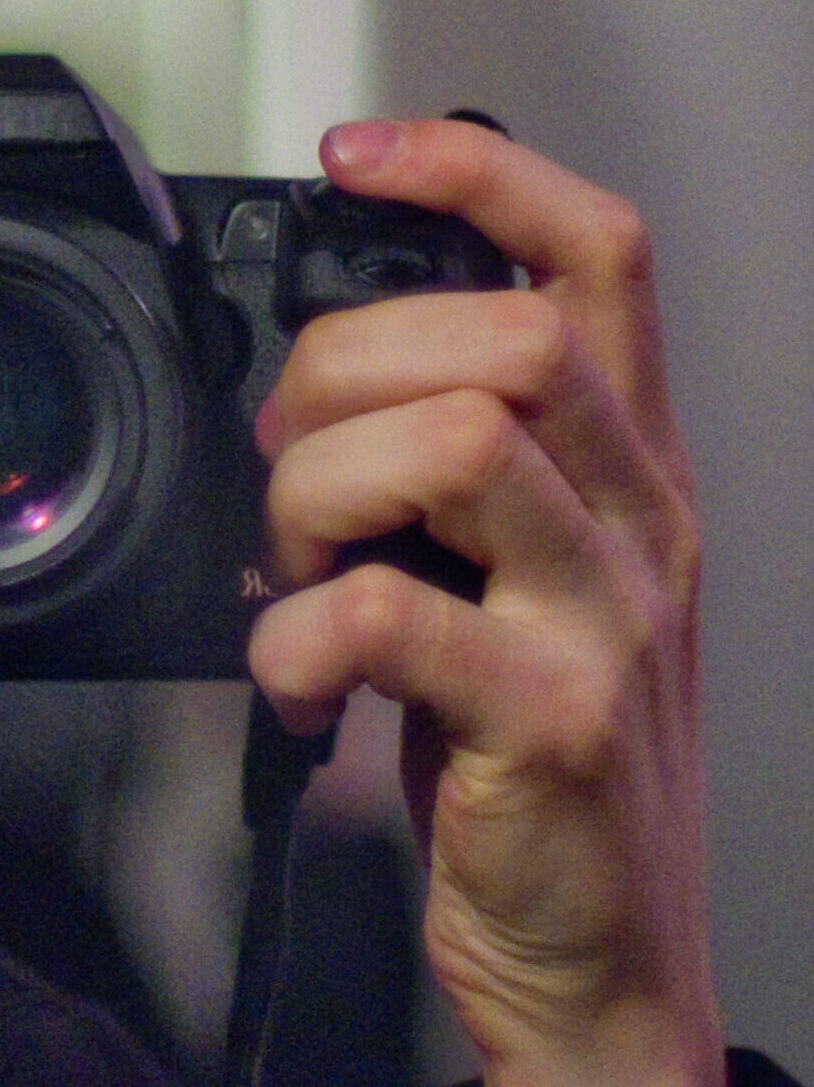 Boyfriend’s hand, my hair, Tommy’s green, my hot pink. The creases of the armpit of my top make for hair wisps. [IG]