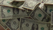 He combines them. The platform the artist is on becomes the block; the curve of dollar bills inspires the tongue and ears; the moon face man inspires drawing style, the circular dots, his ears make the nubbin legs, his tie inspires the wagging tail. [IG]