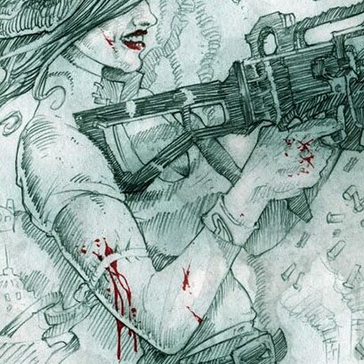That’s really quite good. You got the cloth wonderfully; and there’s a likeness in my face. I particularly dig the style – it’s loose while being very under control. I think you work best painting with broad strokes (as opposed to small-brushed detail), which is odd, considering how good you are with intricate linework.