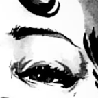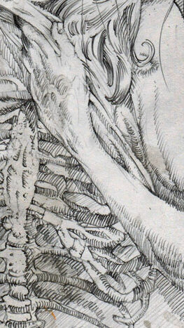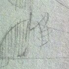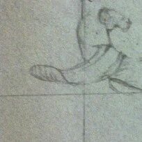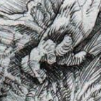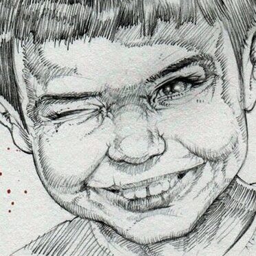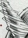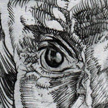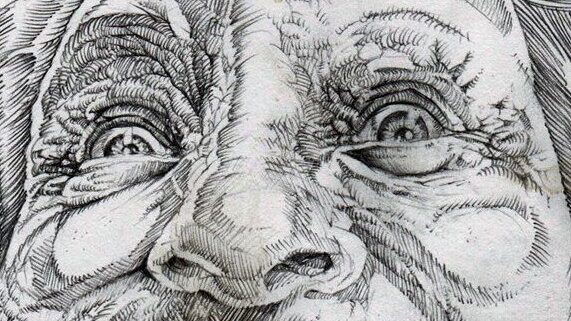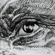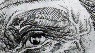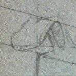 His finger obscures the tiny image just enough to give him the appearance of a triangle of hair, which he puts in his drawing.