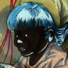 Her face combined with child in the color photograph.