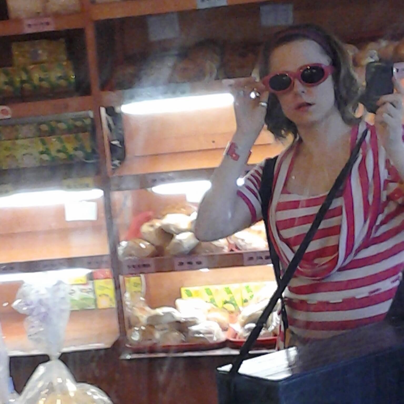 Riffing off of a meme again. These two images next to each other [fb] with my stripey top and sunglasses with a bag diagonally across me, the meme fellow with long hair, hand gesture, and shadowed lines behind him…