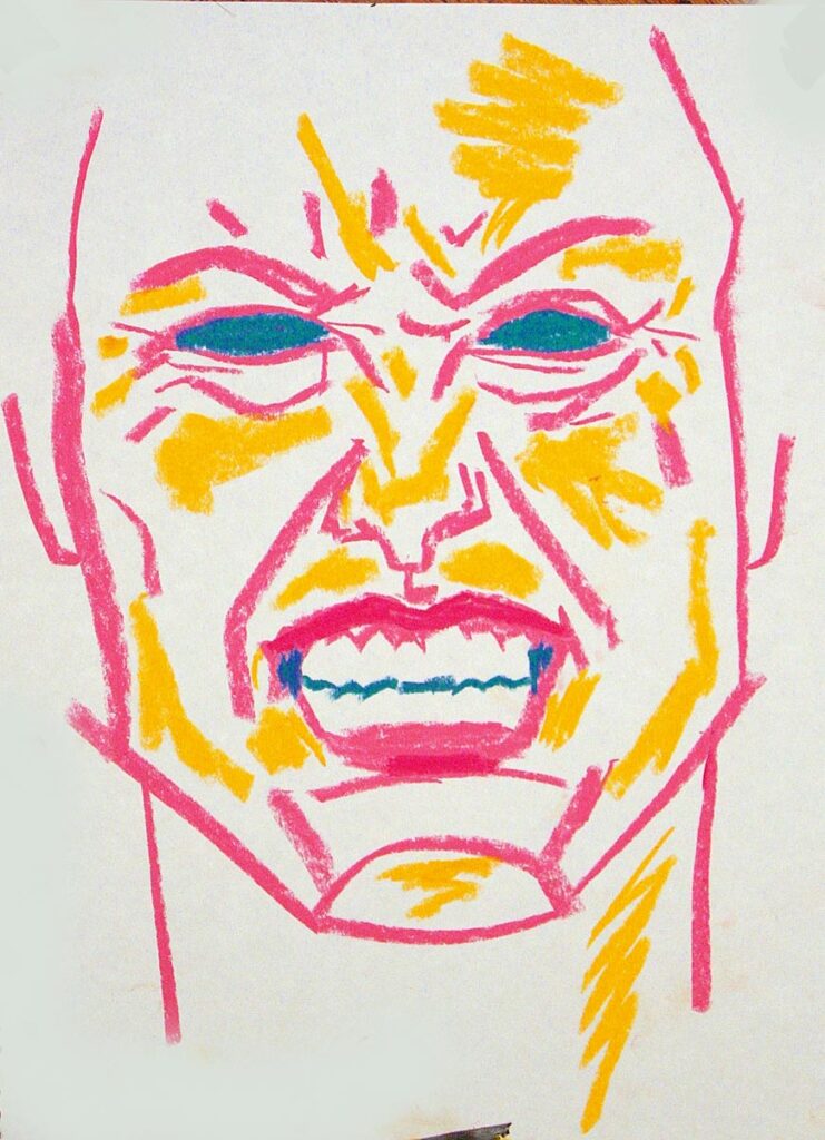June, I post photos from my mom’s house, showing her painting with a green background [IG]. Stefan posts a painting of Linda Blair in the Exorcist by his father. [fb]