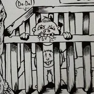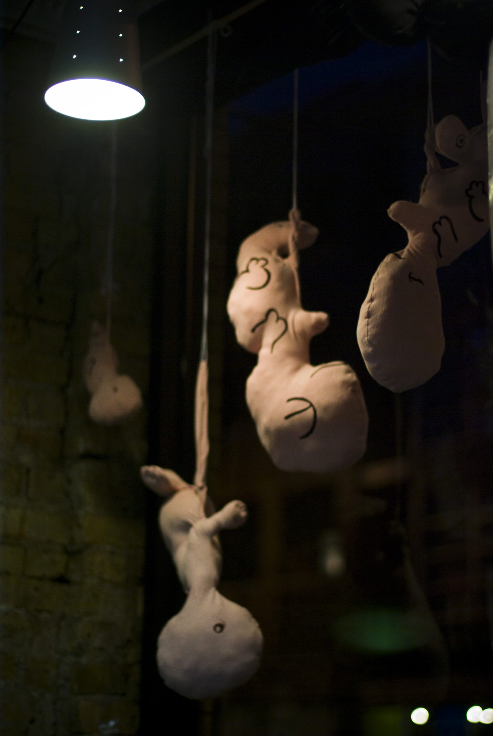 Right beside it, is this photo of plush fetuses hanging in the comic store window. [flickr]