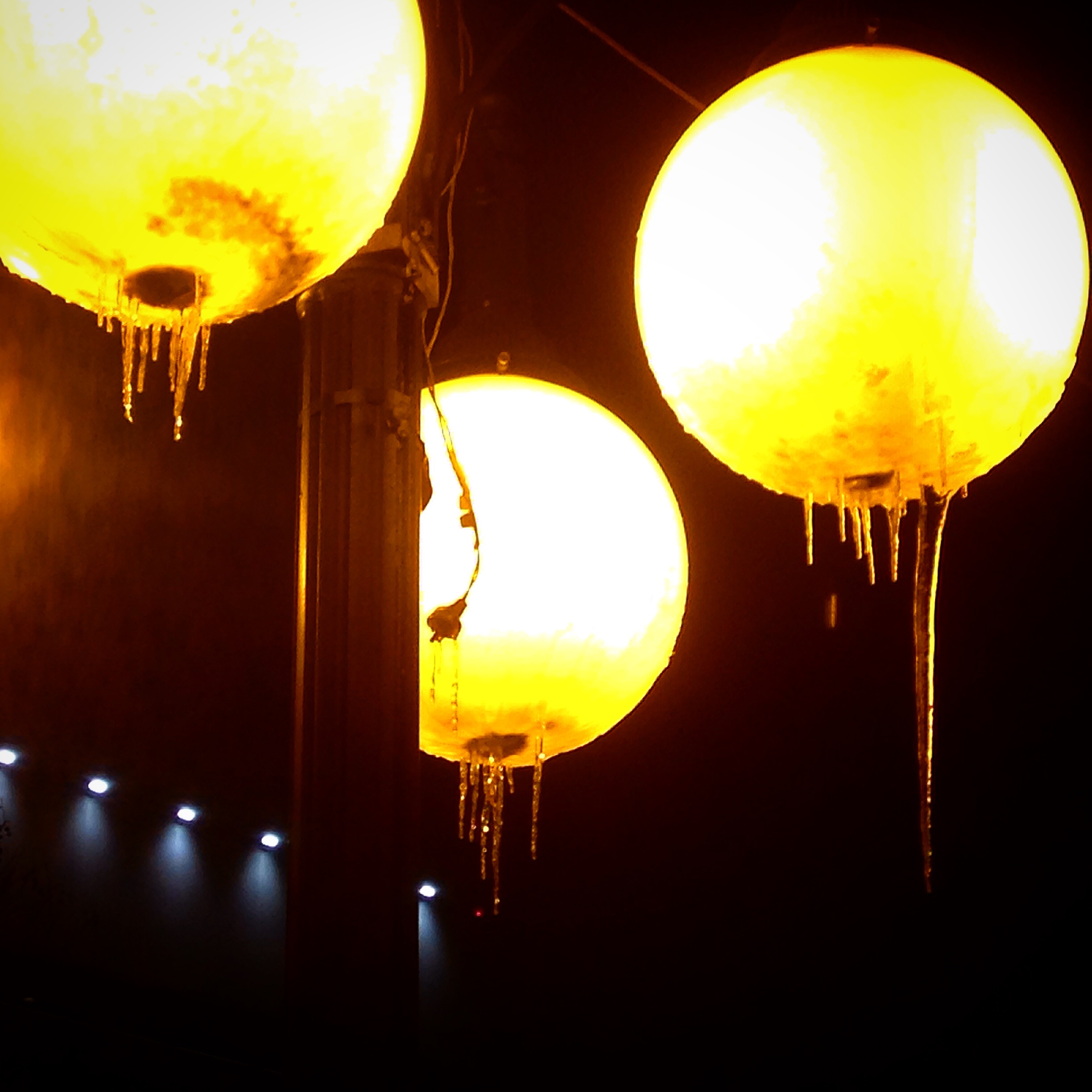 Icicles on the globe lights create a weapon. He kept my tubal ligation scar. [fb]