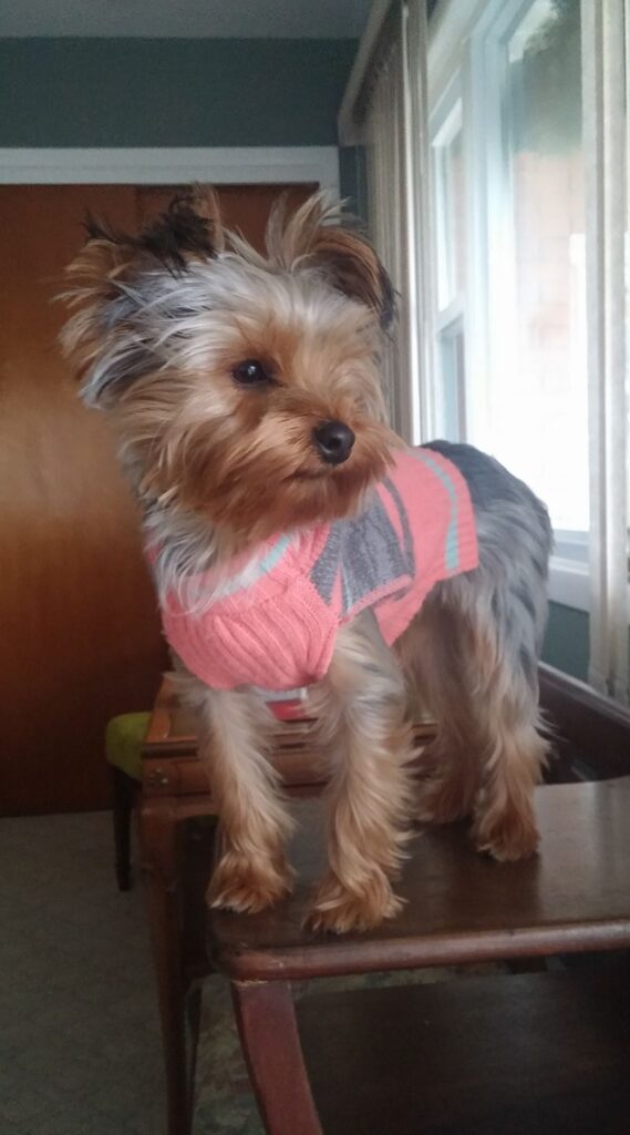 And so, Stefan photographs his dog in front of a window at window sill level on wood, like the chair in front of Miss Kitka. [fb]
