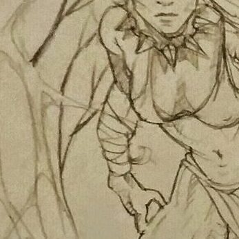 (Miss Kitka had laid down on a pink pastel drawing.)