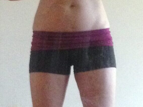 which leads Stefan to this autoupload from February 2015, wearing shorts with a purplish band.