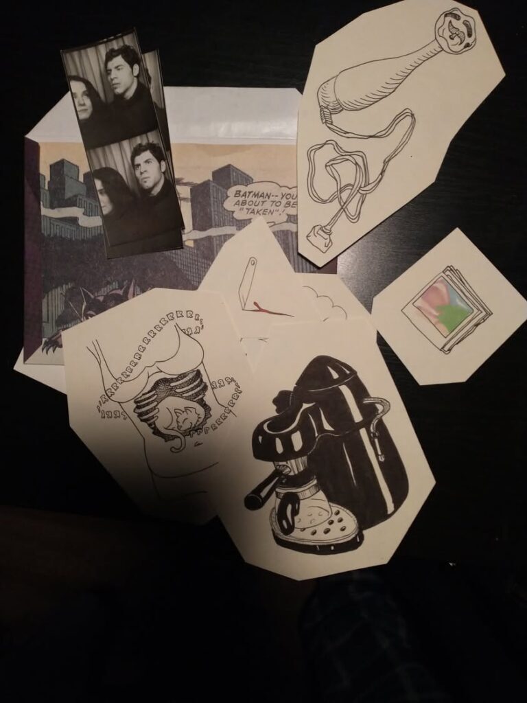 Stefan sends me a photo of a gift of thank you drawings I’d made him, and our photobooth photos.