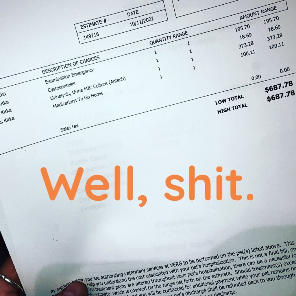 October 12th. My vet bills with orange lettering and filthy fingernails. [IG]