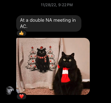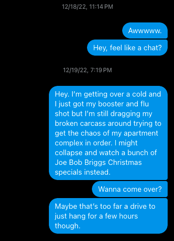 He was sending me a series of these family photos on Christmas Eve (this is the only one that still exists). He sent them all without explanation, while I was home alone and sad on my birthday. I didn’t get it.
