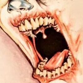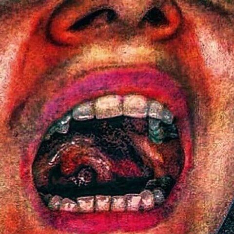 Blonde me with her open mouth, in a circle with his tattooed Darkness hands [fb]
