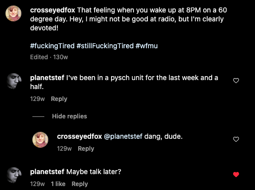 Directly below him on Instagram are my two most recent posts for my radio show [IG] [IG]
