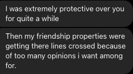 Well…..let me tell you what I had to swallow for the duration of our friendship that you loved so much when you had so little….