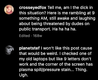 February. I rant about people yelling “FUCK YOU” at me, and also threatening to “french my husband”?! [IG]