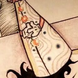 With his alterations, now when upsidedown it makes a grinning monstery skull head with wavy black hair