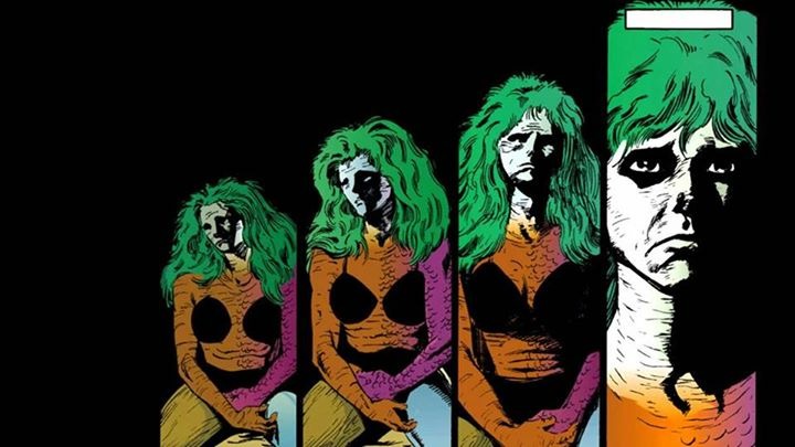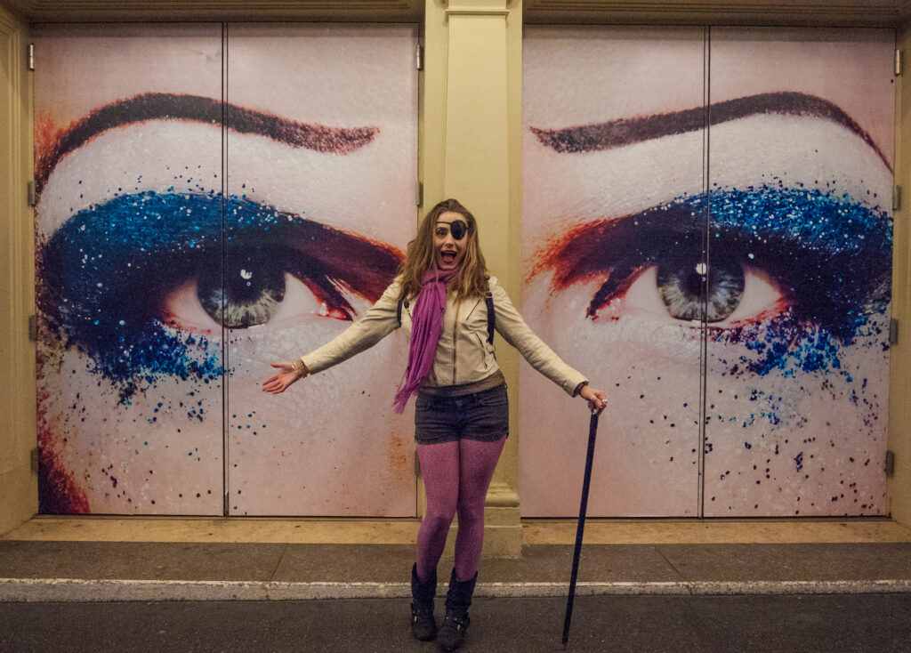 Five days apart. Another abstract connection. [IG] He matches the teal of my outfit to the girl’s hair, a doorway behind her with blue light in the background, my shiny tight pants and hand positions like the guitarist and the girl [fb].
