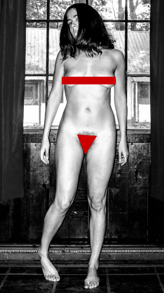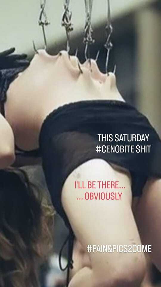 January. Screenings for the film Infinity Pool. I post a shot I didn’t take of the actors posing with a collar and leash, as well as a shot I did take in front of a movie screen, the man’s wide stance. [IG]