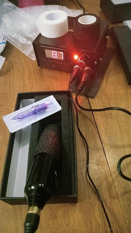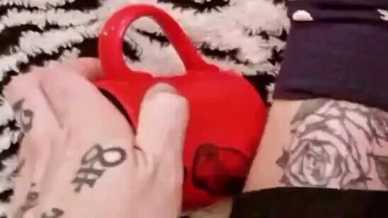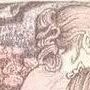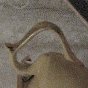 My tabletop face pressed between breasts, his tattoo becomes the hair swirls, fingernails, the ear from the teapot handle, the color taken from the video of my ranting. [fb]