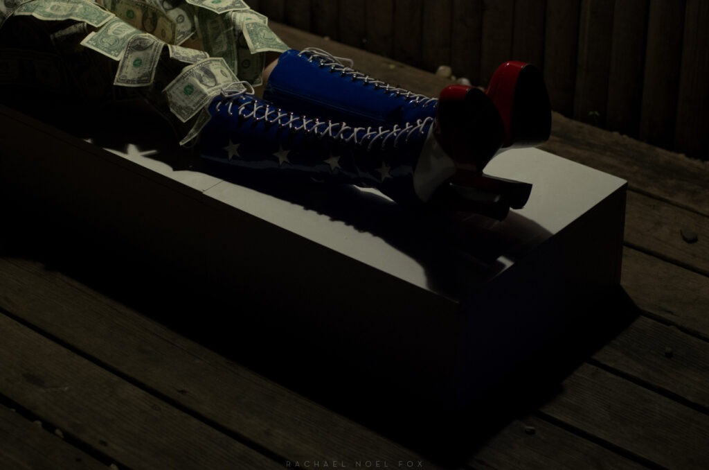 Photographs of the artist’s boots from the same event, the stars shrouded in shadow: