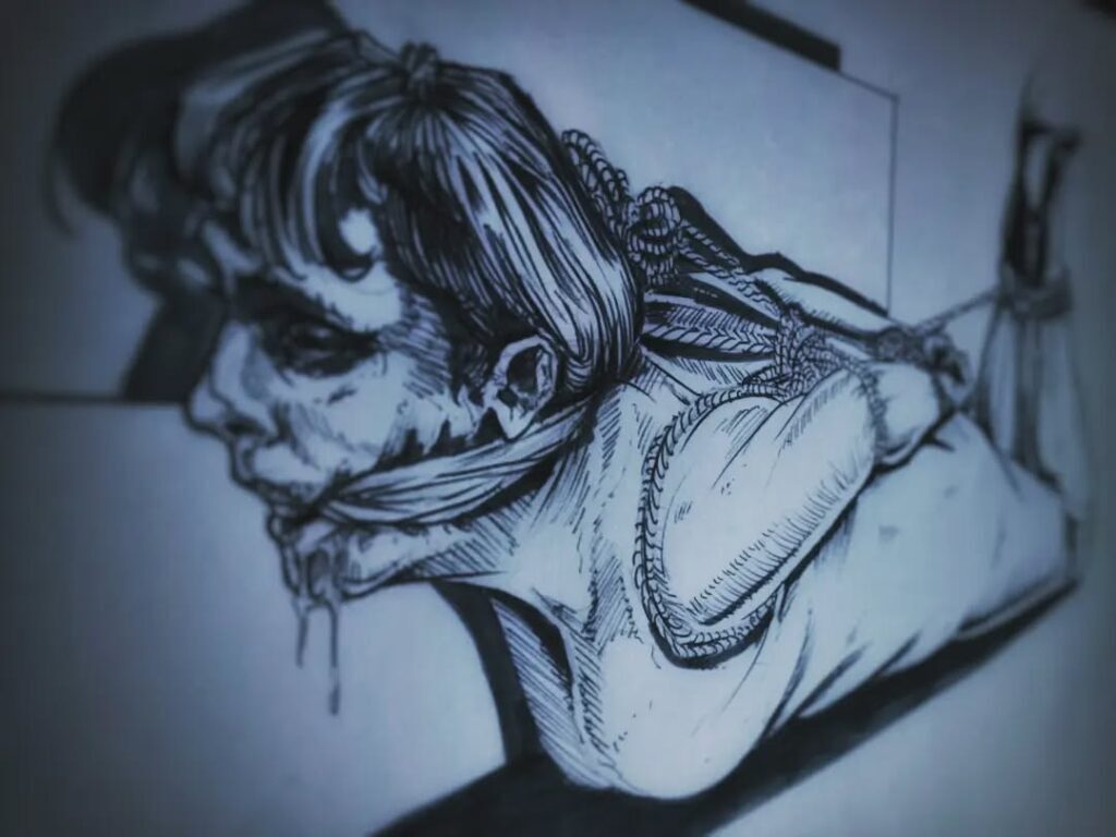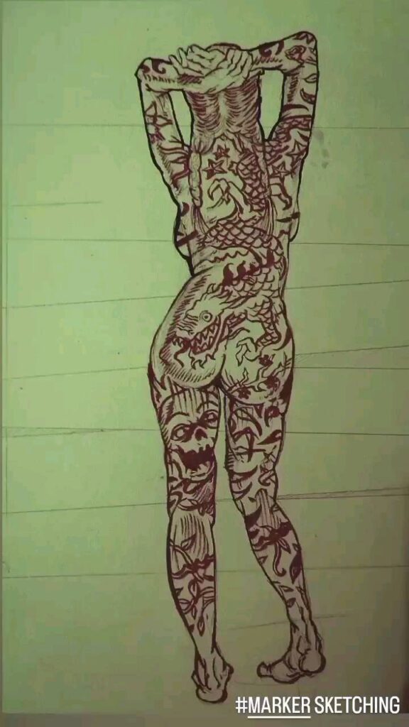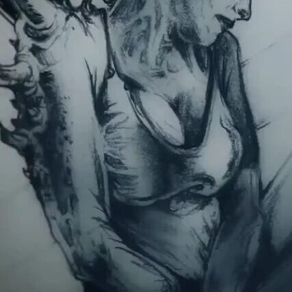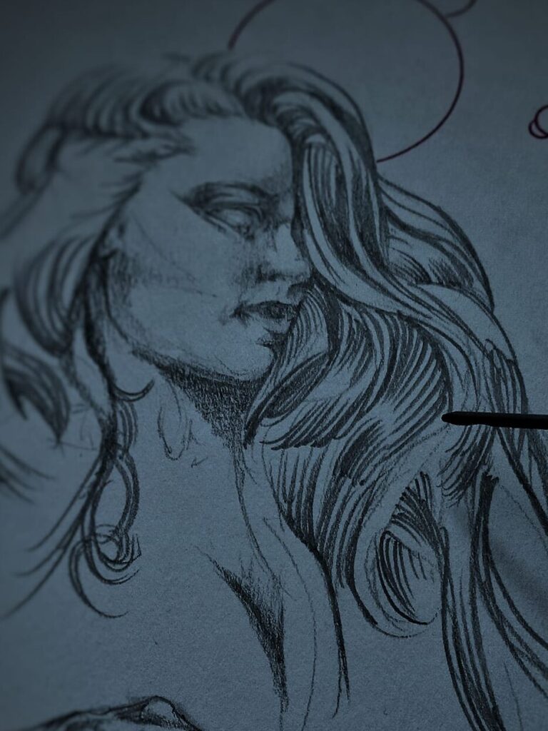 Stefan uses the gif for the color tone, the ball to inspire breasts, and the photographs for the rest of the drawing. [IG]