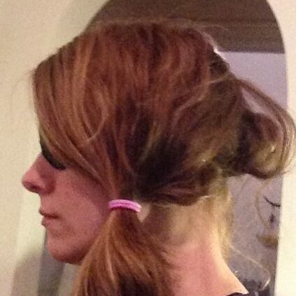 My cat makes the diagonal black, the yellow wall my yellow pillow, the bright pink hair is CENSORED, my long salmon/pink hair pieces makes the two pink slashes. [IG]