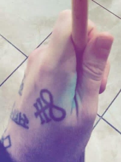 Horses on his socks, roses on his arm and ankle, the hand position mimicked. [IG]