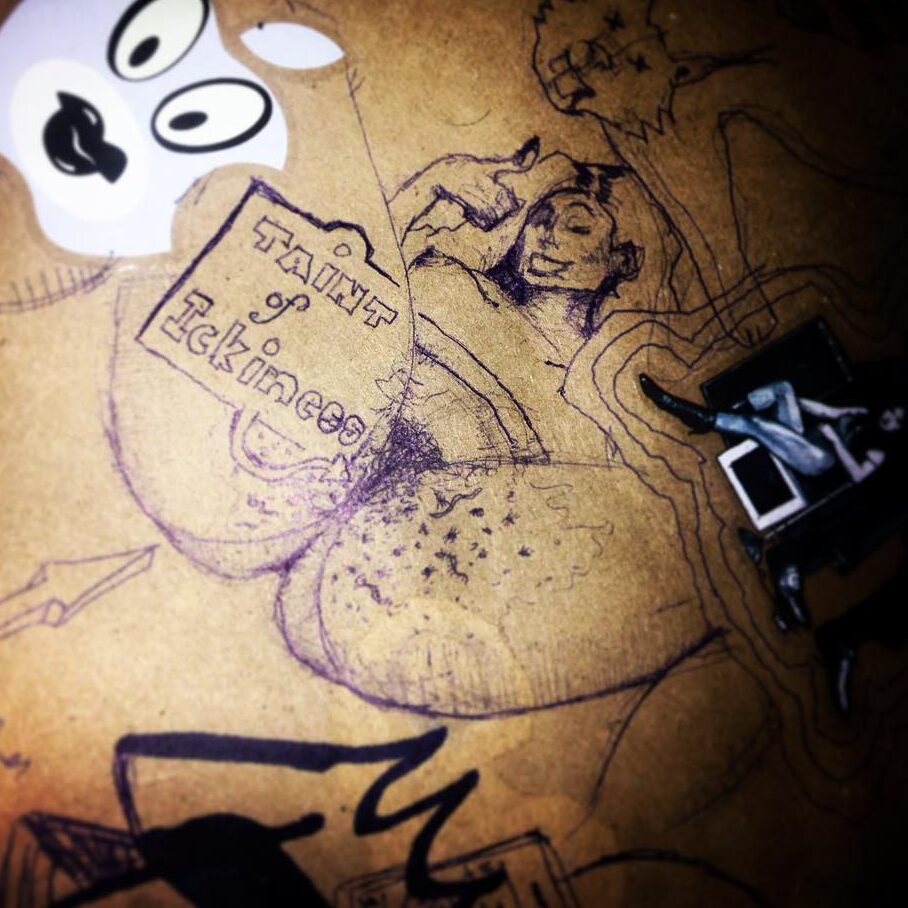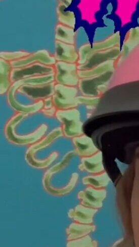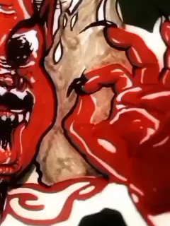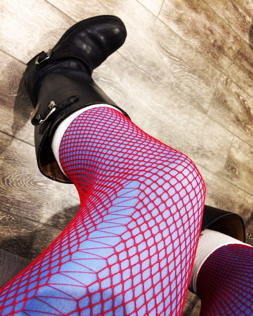 He draws a skull with the colors of my tights / fishnets. [IG]