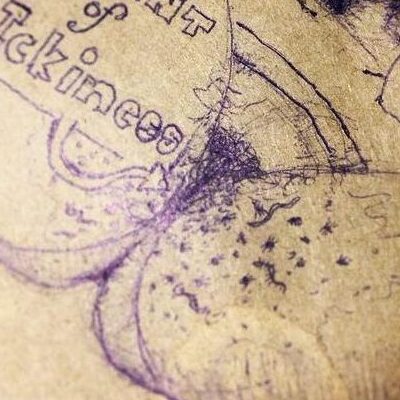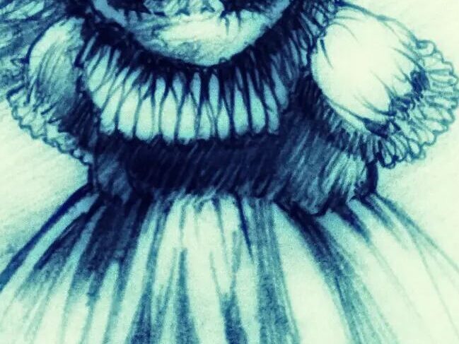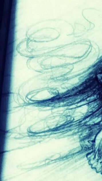 He draws a portrait, combining our faces into one, the blue from the shadows behind me. [IG]