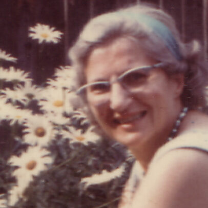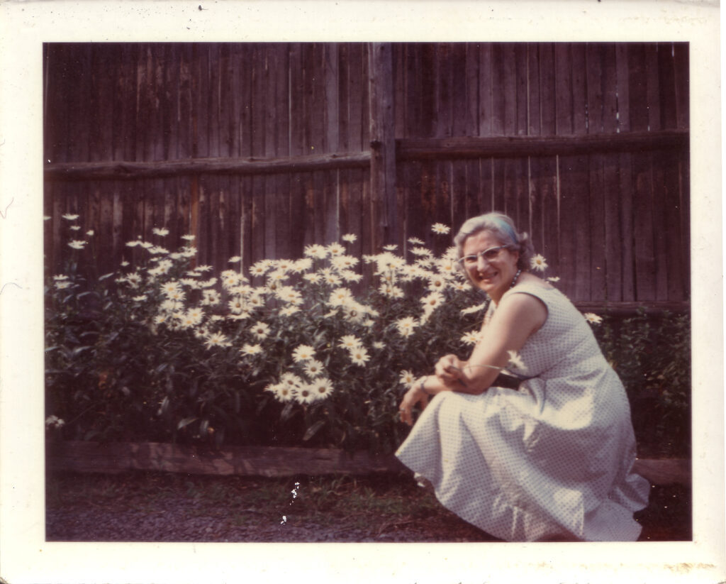 which brings Stefan to my Gramma with a similarly strong nose and grin posing in front of daisies