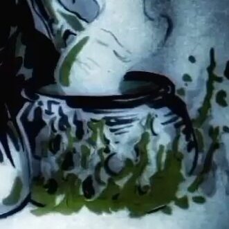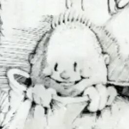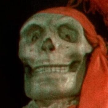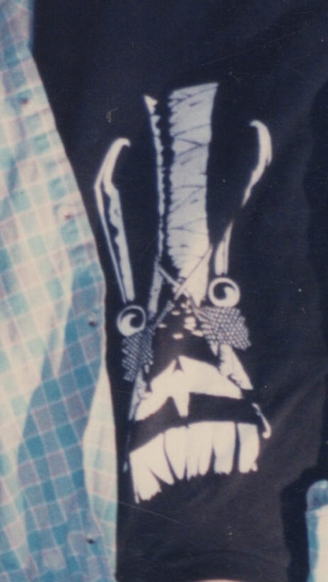 Upside-down Johnny the Homicidal Maniac makes a bendy skull, the folds and shadow of the flannel makes the smoke tendrils.