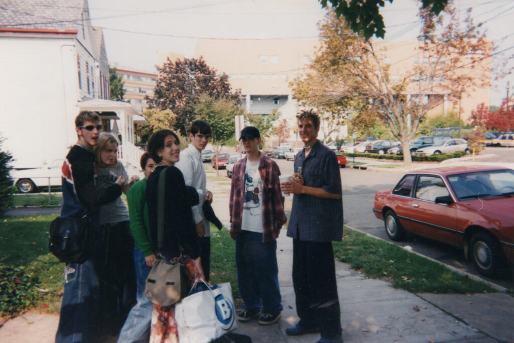 My radio playlist from August 14th one week prior, with this image of my father’s college band, [WFMU] my father in plaid and a white shirt, sneakers, a mandolin at their feet