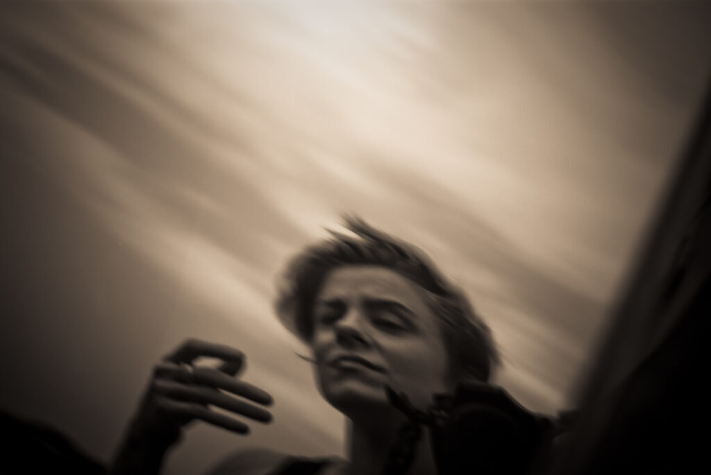 the overall pose of Farscape and the facelessness of my laser photo leads Stefan back to this photo of his that he’d tweaked to graininess and blurred out his own face.