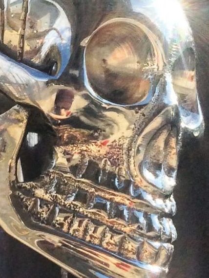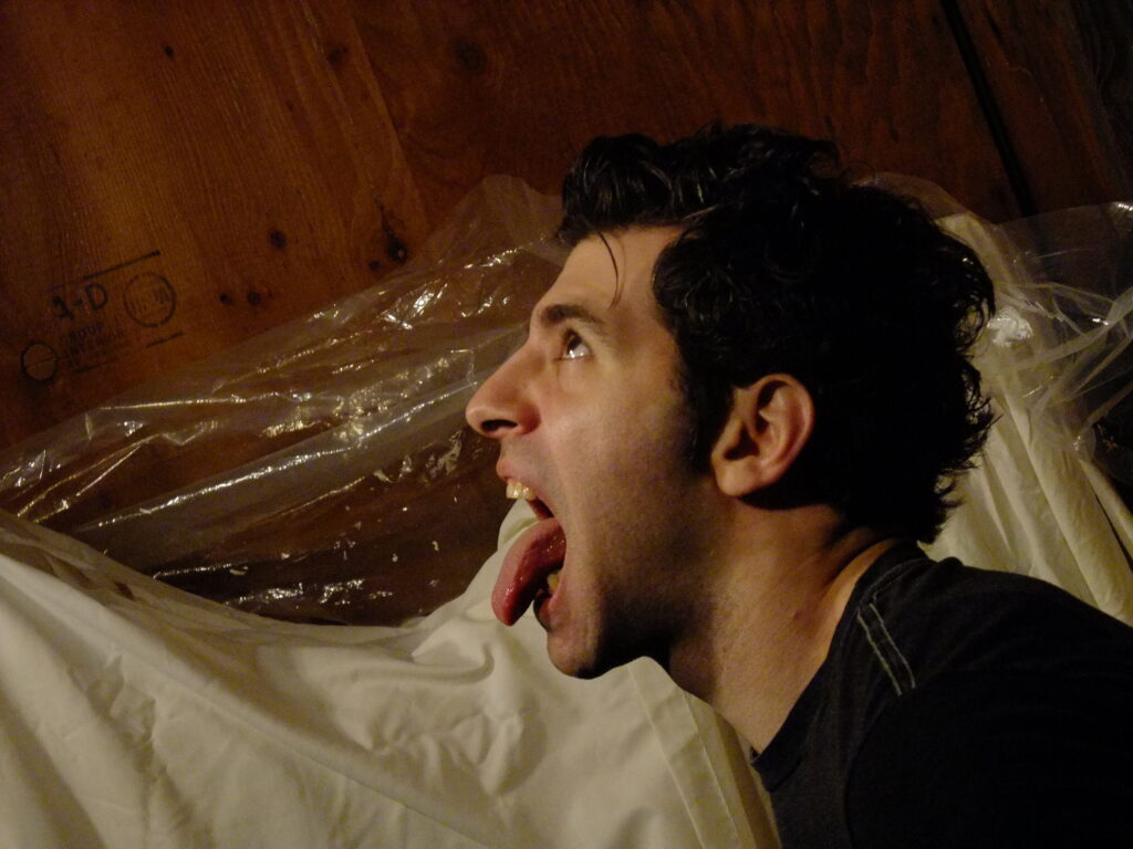 This brings Stefan back to a photo I took of him in a NJ diner, mirrored and chrome covered with blue and red neon lights to the left, his own maniacal face.