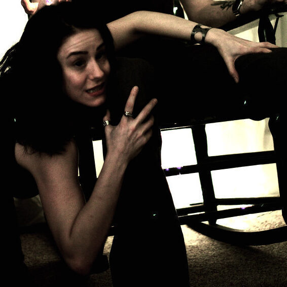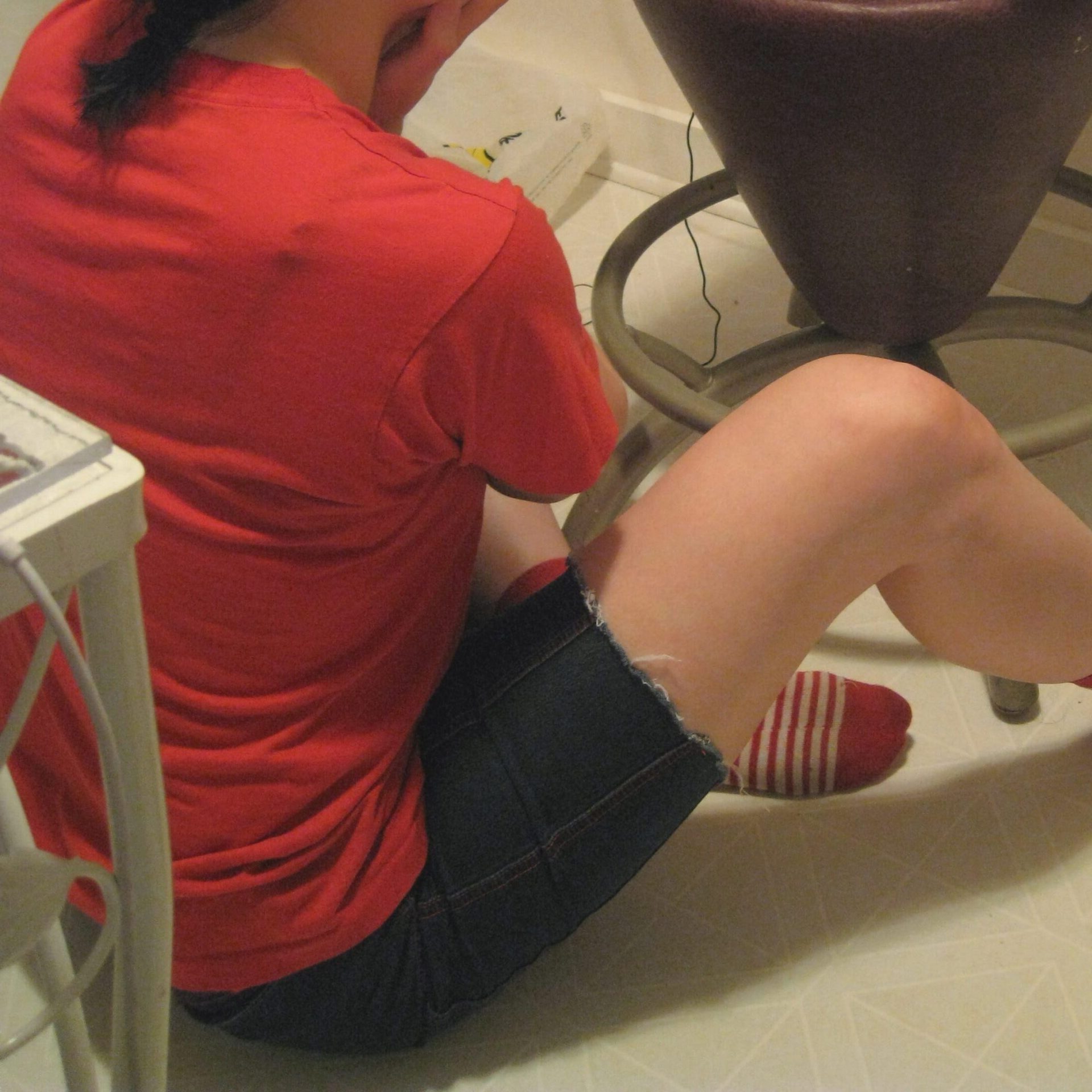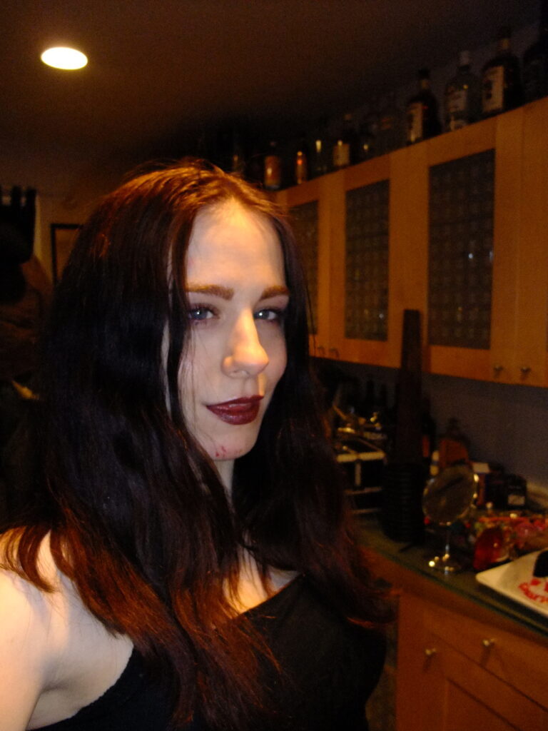 Again, my halloween season outfit from days prior, my leaning forward while wearing fishnets…