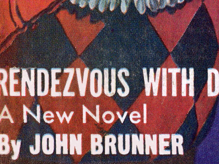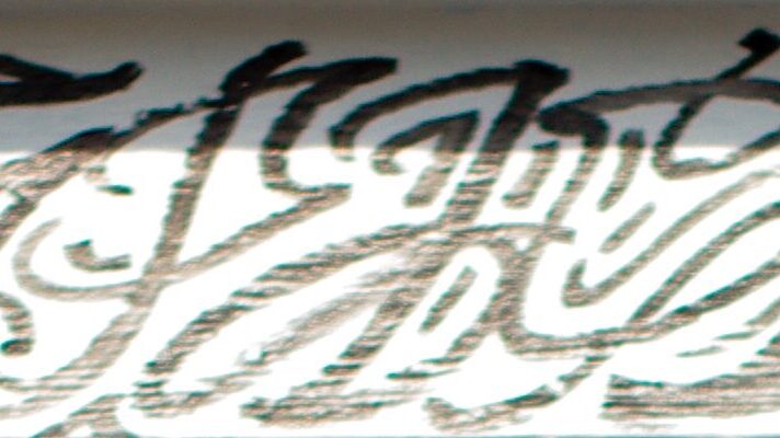He matches the colors and pose, his lettering compositionally where the flyer is on the pillar.