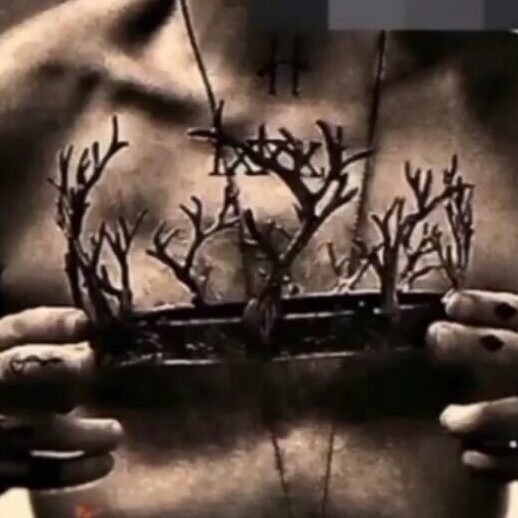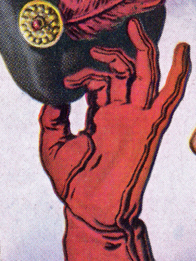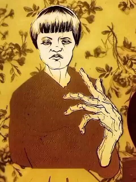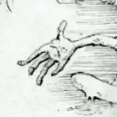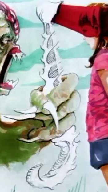 He draws my hand, zombified, with the color palette of the ad and my photo combined. [IG]