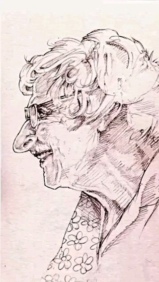 He draws a mashup of my Gramma, flowers now around her neck like Alexei. [IG]