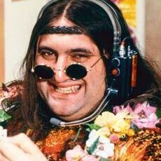 My radio show from one week prior on August 7th posted this image of Alexei Sayle, smiling with flowers round his neck. [WFMU]
