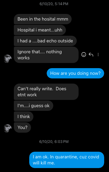 His messages to me missing. My reply: